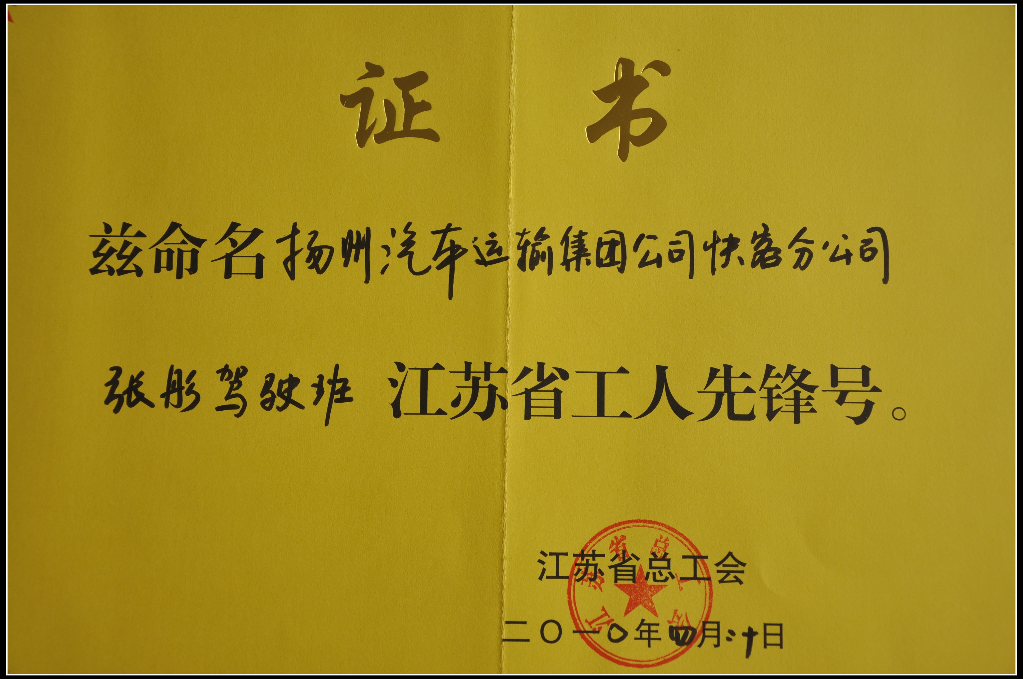 集團(tuán)公司快客分公司張彤駕駛班被江蘇省總工會評為工人先鋒號