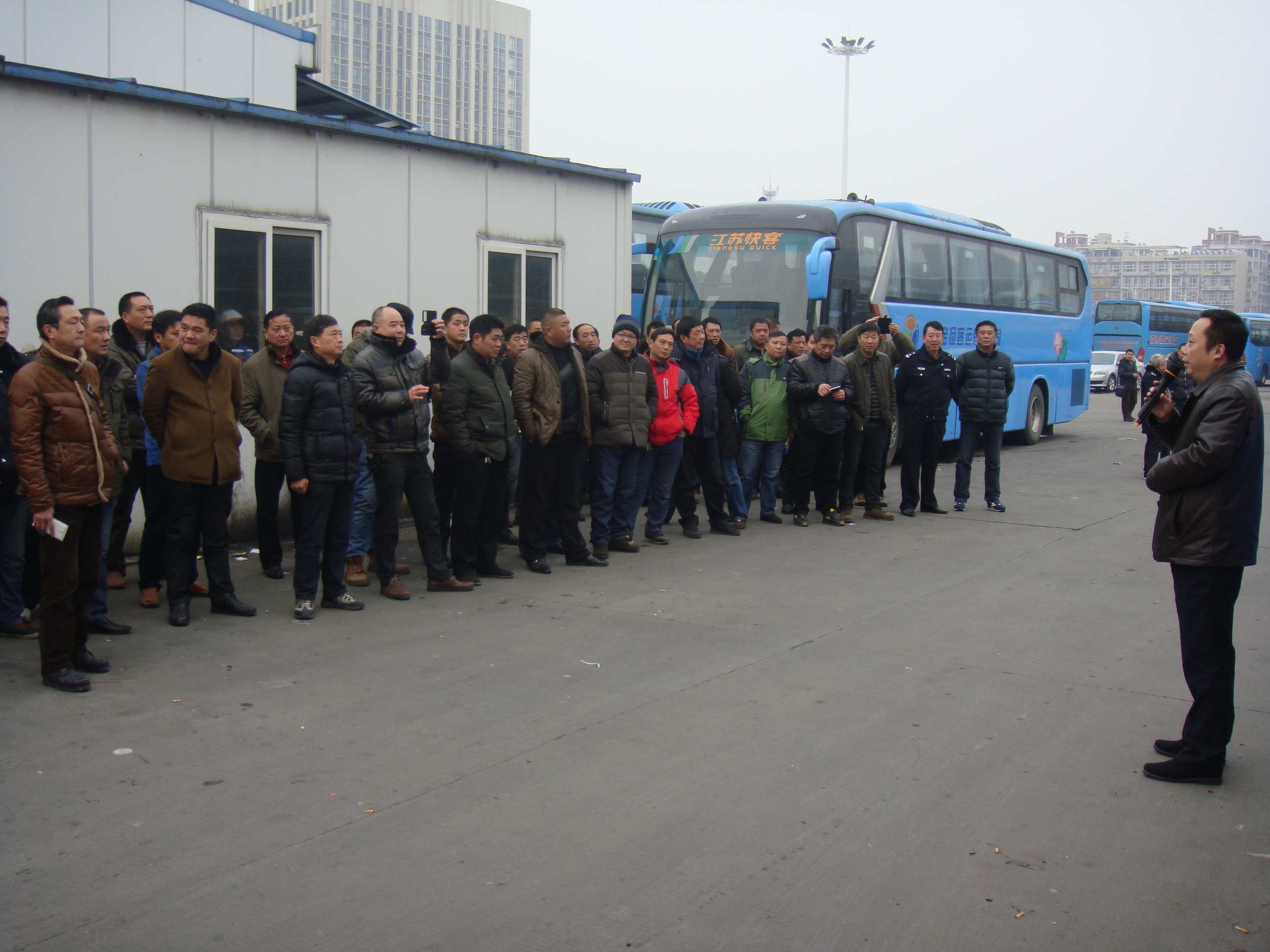 整個活動歷經(jīng)45分鐘,在副總經(jīng)理談衛(wèi)國的鳴笛聲中宣告結(jié)束。市運(yùn)管處書記徐才祥、市交通產(chǎn)業(yè)集團(tuán)副總經(jīng)理王寧生分別對我司的安全管理工作給予了高度評價(jià),希望我司上下時刻繃緊安全弦,狠抓各項(xiàng)源頭安全管理,狠抓春運(yùn)車輛的安全技術(shù)關(guān)、駕駛?cè)藛T的安全教育關(guān)以及站內(nèi)、途中旅客的優(yōu)質(zhì)服務(wù)關(guān),杜絕一切車輛的超速、超員、超疲勞駕駛現(xiàn)象發(fā)生,切實(shí)做到思想上警鐘長鳴、制度上嚴(yán)密有效、技術(shù)上堅(jiān)強(qiáng)有力,確保圓滿完成2015年春運(yùn)安全生產(chǎn)工作。