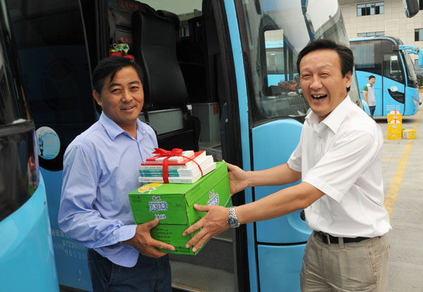 近日高溫頻發(fā),為切實維護(hù)廣大職工的生命健康權(quán)益,認(rèn)真做好夏季防暑降溫工作,8月21日下午,市總工會副主席朱明一行人來到我司快客分公司,看望慰問高溫下堅守在工作崗位的一線駕駛員,為他們送去解暑飲料及學(xué)習(xí)書籍。集團(tuán)公司總經(jīng)理助理陳家宏、工會副主席陳婷陪同慰問。