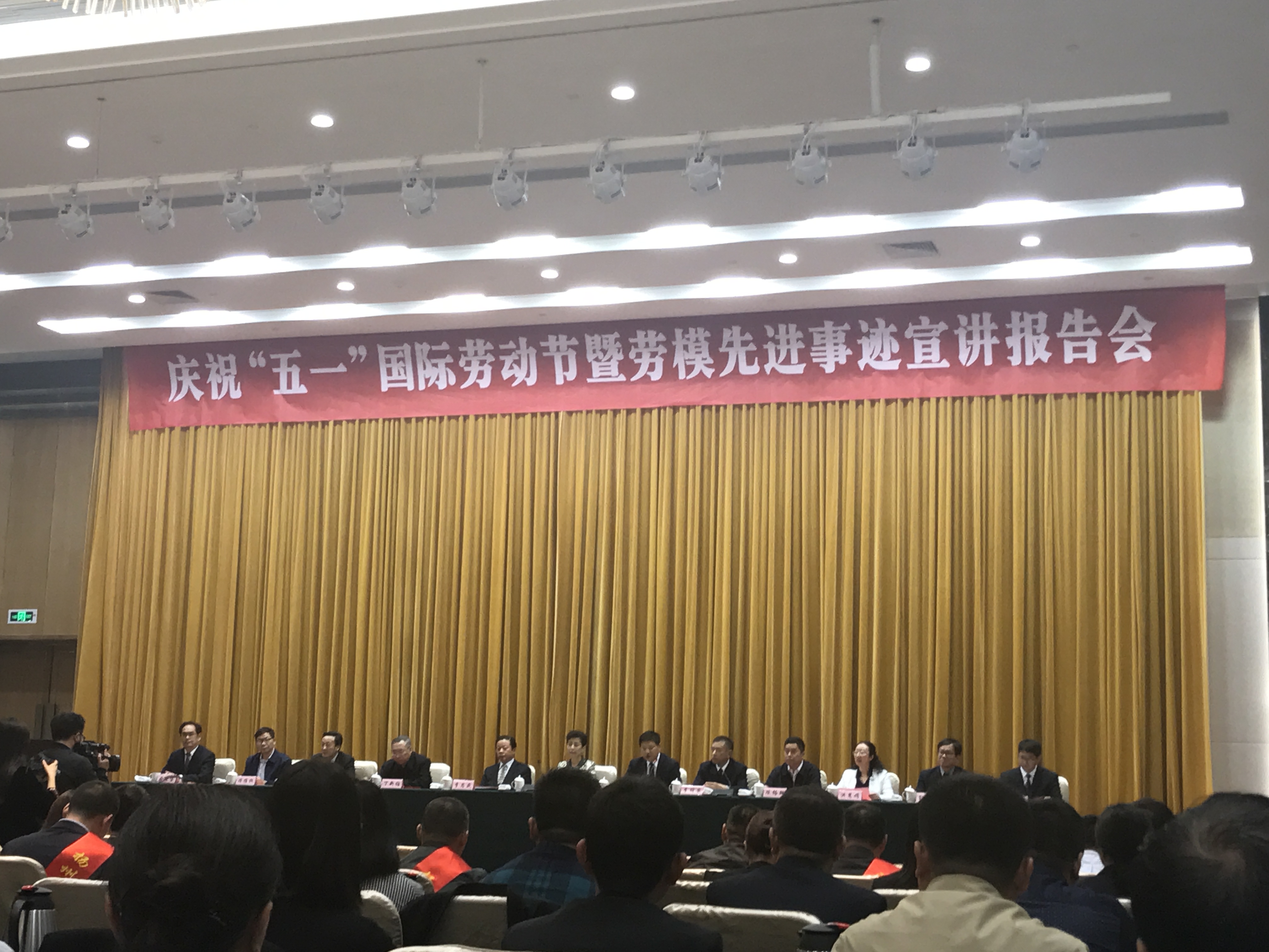 4月27日下午,市委、市政府在揚(yáng)州明月湖酒店三樓會議廳舉行慶祝“五一”國際勞動節(jié)暨勞模先進(jìn)事跡宣講報告會,揚(yáng)州各縣(市、區(qū))總工會、功能區(qū)工會和市直各產(chǎn)業(yè)工會的工會主席,受表彰的2018年全國、省、市五一勞動獎?wù)潞凸と讼蠕h號獲得者代表及職工代表近300人參加會議。會上,揚(yáng)汽集團(tuán)修理廠職工劉東、汽車站服務(wù)班分別獲頒“揚(yáng)州市五一勞動獎?wù)?rdquo;、“揚(yáng)州市工人先鋒號”榮譽(yù)稱號。