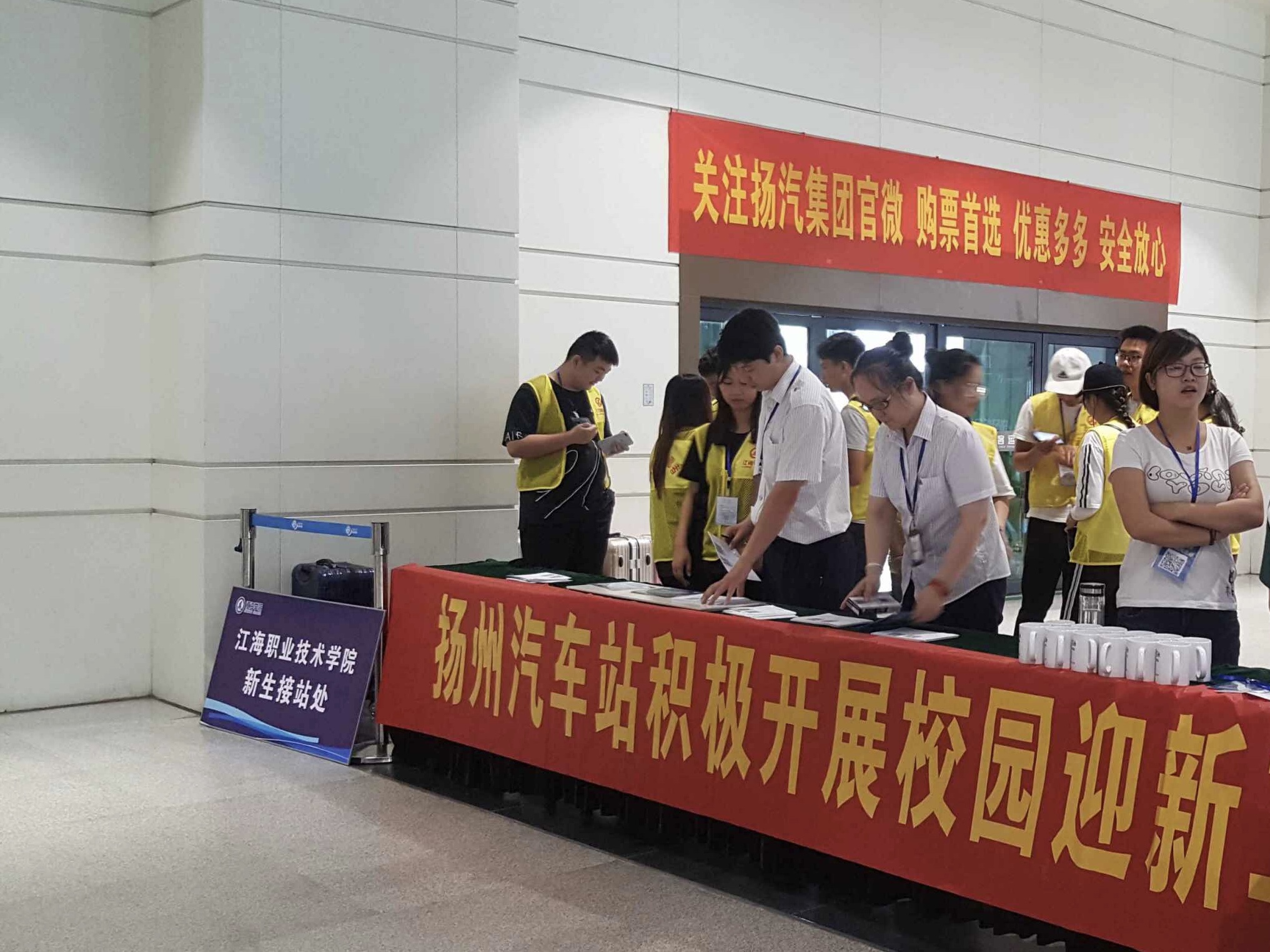 8月31日起,揚州站在換乘大廳設置校園迎新候乘區(qū),按照各校區(qū)新生入學時間表組織志愿者在現(xiàn)場開展校園班線問卷調(diào)查、推廣揚汽官微等營銷產(chǎn)品,為集團公司下一步拓展校園市場作好基礎工作。“校園迎新候乘區(qū)”這一舉措也得到了校方的一致好評。