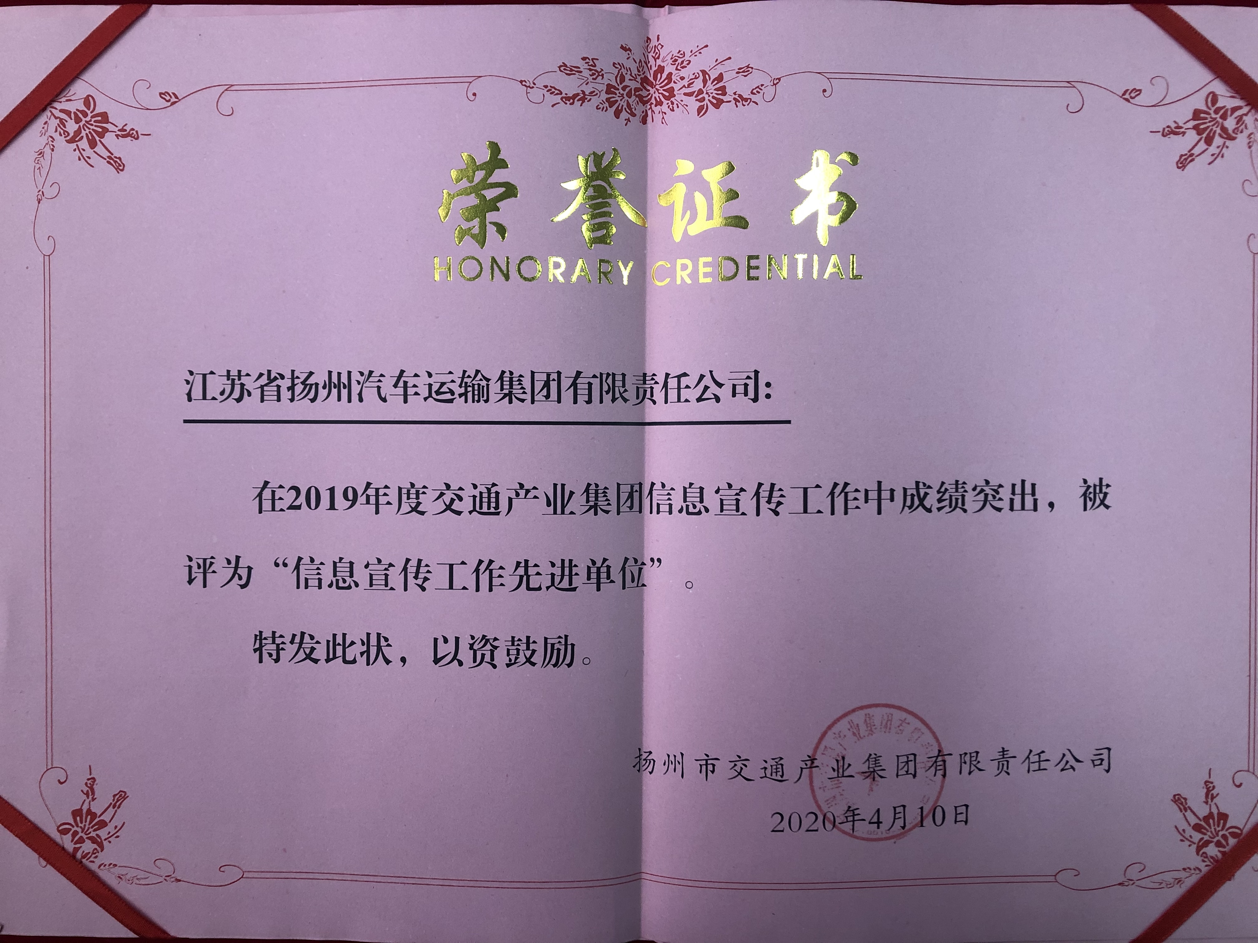4月10日下午,市交通產(chǎn)業(yè)集團(tuán)召開(kāi)信息宣傳工作會(huì),會(huì)上表彰了2019年度信息宣傳工作中的先進(jìn)集體和個(gè)人,揚(yáng)汽集團(tuán)獲得“信息宣傳工作先進(jìn)單位”稱號(hào);另有三名同志分別獲“信息宣傳工作先進(jìn)個(gè)人”和《揚(yáng)州交通產(chǎn)業(yè)集團(tuán)年鑒》(2018)優(yōu)秀撰稿二等獎(jiǎng)。