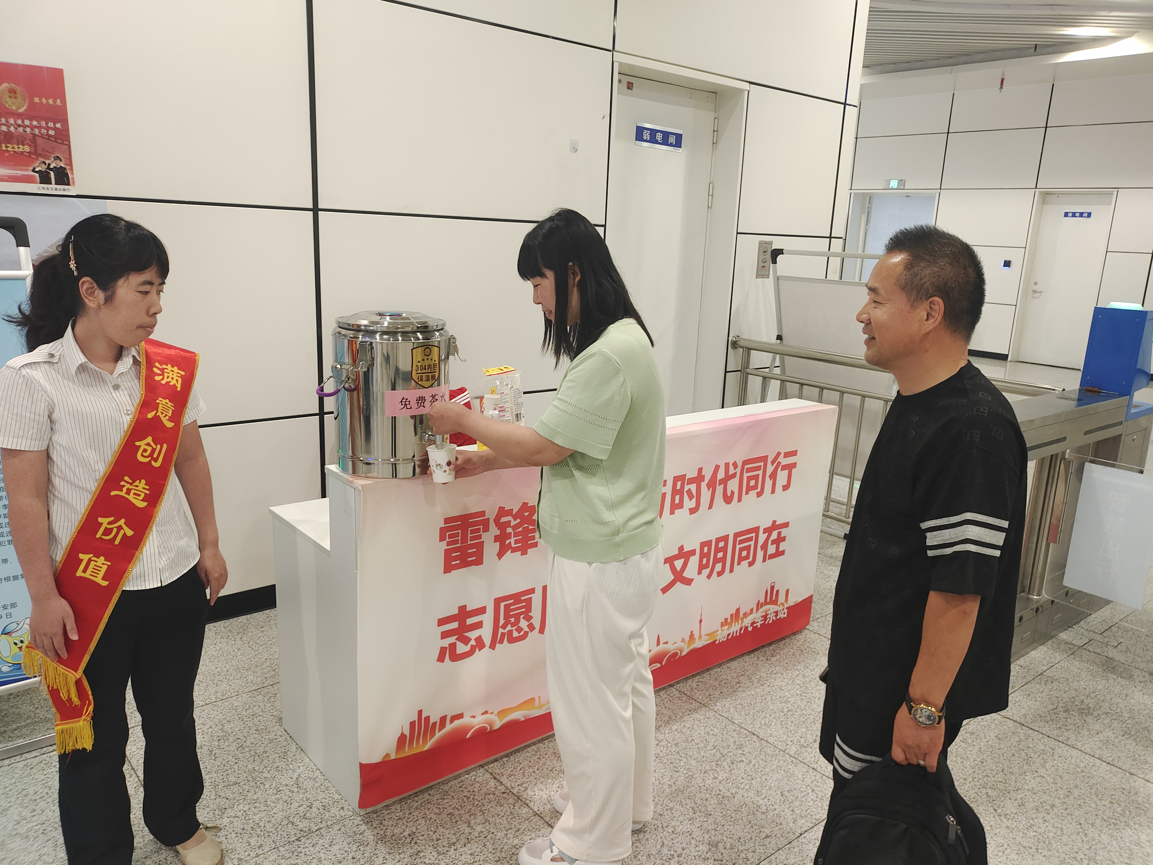 隨著夏季高溫的到來(lái),為給旅客提供便民溫馨的服務(wù),營(yíng)造舒適旅途,車站工作人員分別在揚(yáng)州汽車站候車大廳、揚(yáng)州東站進(jìn)站口、江都汽車站服務(wù)臺(tái)設(shè)置茶水臺(tái),精心準(zhǔn)備了大麥茶、涼茶以及防暑降溫藥品等,黨員同志們更是發(fā)揮帶頭作用,通過(guò)雷鋒車將茶水服務(wù)實(shí)現(xiàn)了移動(dòng)化,為旅客們帶來(lái)身體上的清涼,讓他們感受到心靈上的溫暖。